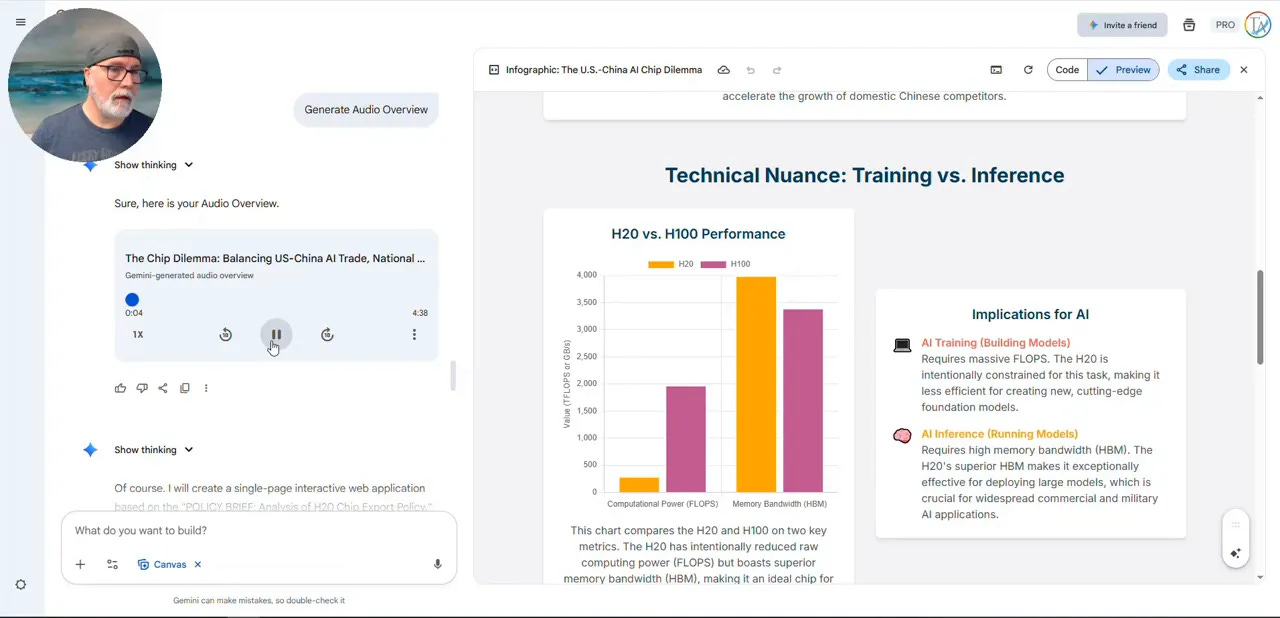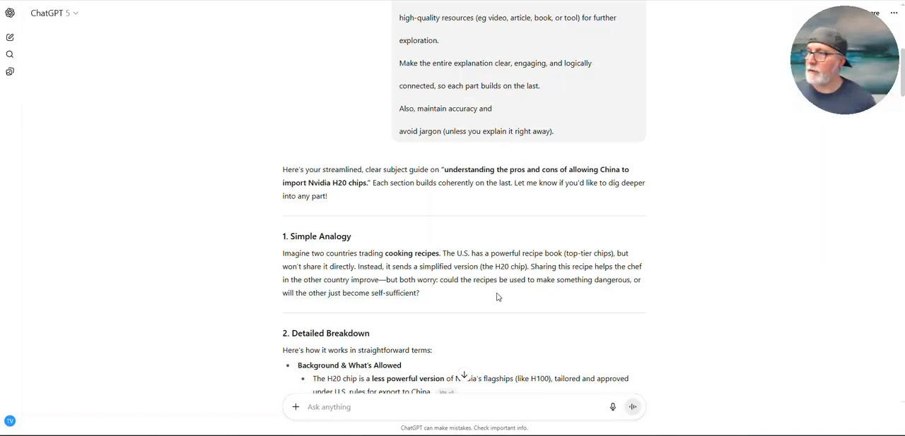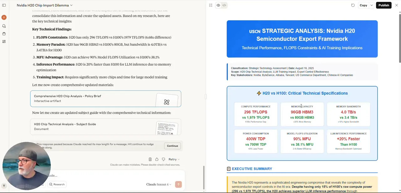 There were headlines recently about U.S. policy on importing NVIDIA “H20” chips into China, and I wanted to understand the technical and policy tradeoffs quickly. Are these chips powerful? What’s the difference between FLOPS and HBM, and which matters for pretraining vs inference? Instead of digging through dozens of articles, I used the same prompt across several AI models to accelerate learning and compare outputs.