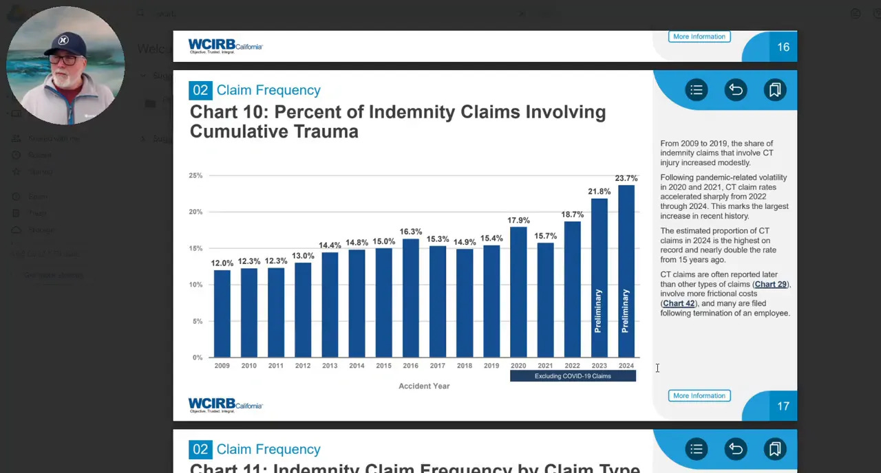 WCIRB’s data and commentary paint a clear picture: CT claim rates accelerated sharply from 2022–2024 — the largest increase in recent history. Because CT claims are often cumulative and medical/legal factors can amplify costs, California trends are a major headwind for carriers with concentrated exposure there.